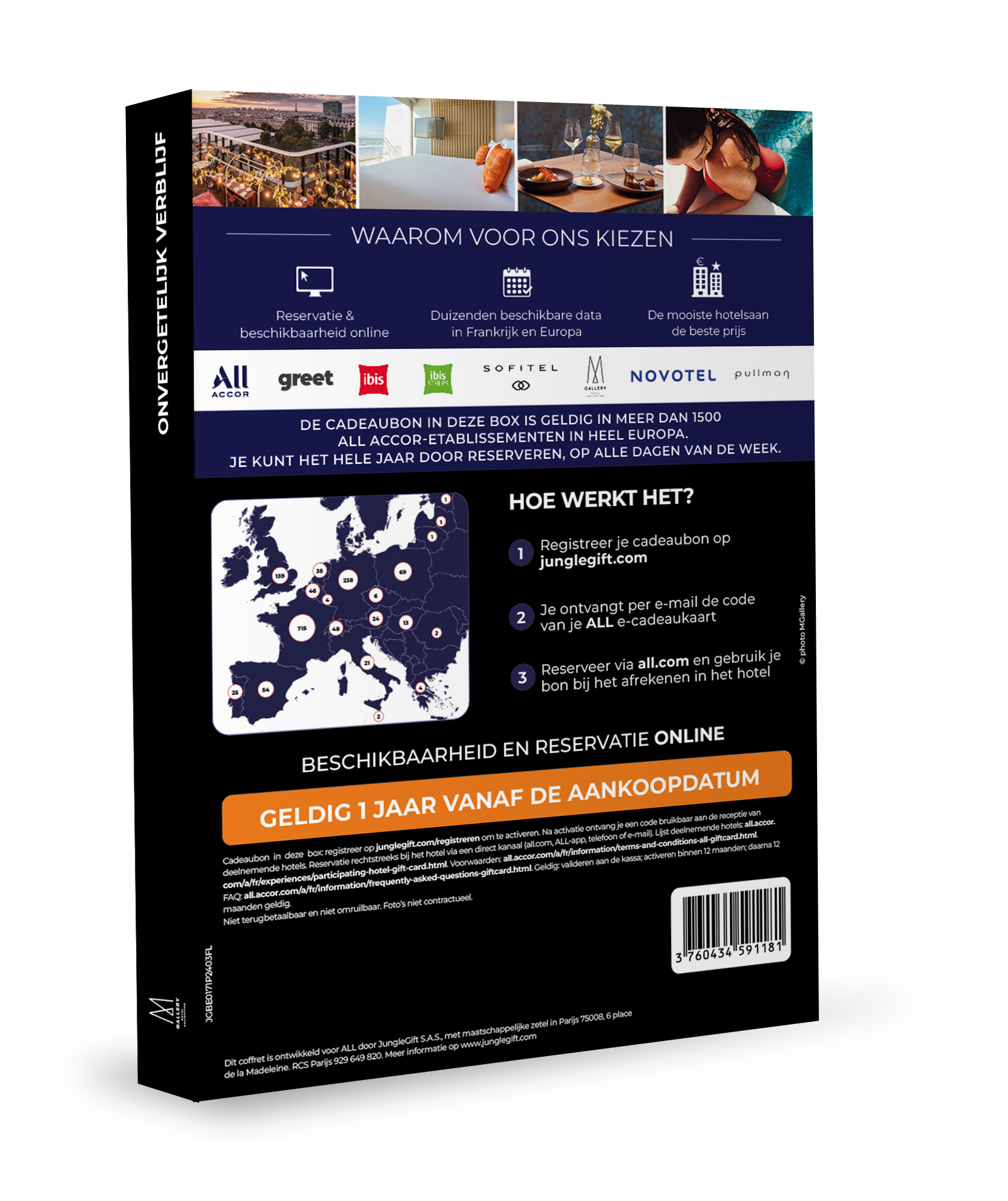 • Cadeaubon geldig in meer dan 1500 Accor hotels: accommodatie, hotels, restaurants en spa's, direct te boeken via de All Accor website.